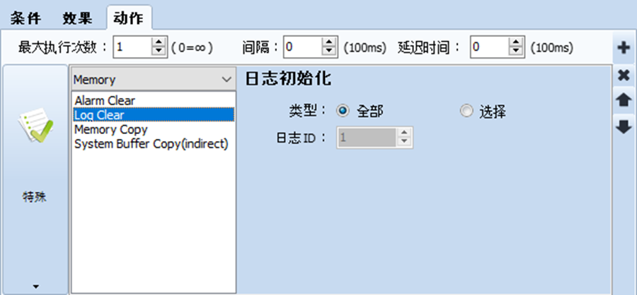 4)选择[Log Clear]后,设置向清除的日志ID。