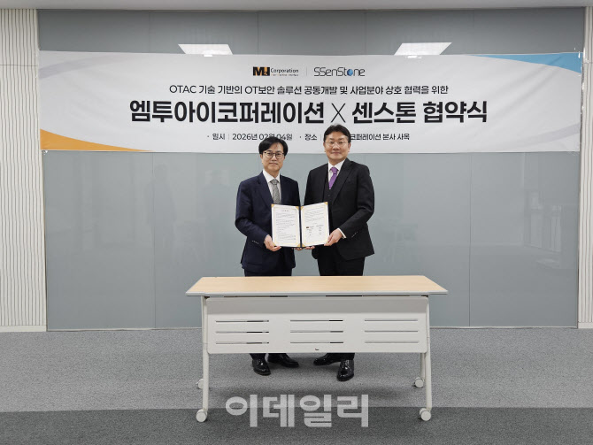 [이데일리 신하연 기자] 엠투아이(347890)는 산업용 보안 전문기업 센스톤(SSenStone)과 산업용 보안 솔루션 협력을 위한 업무협약(MOU)을 체결했다고 5일 밝혔다.
