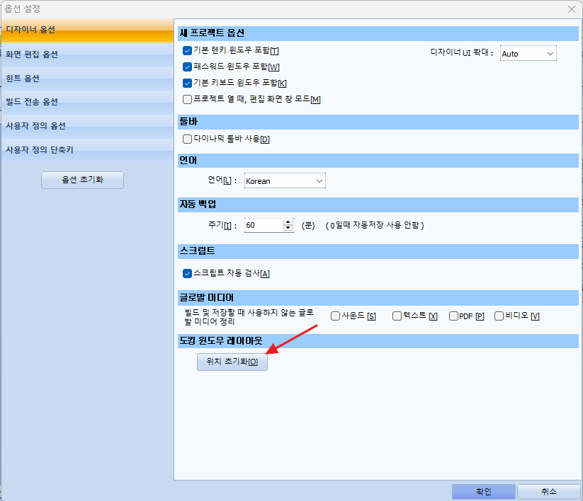 현재 다운로드 가능한 최신 버전에서는 해당 문제가 발생하지 않는 것으로 확인됩니다. 이에 따라, 현재 사용 중인 버전을 유지하시면서 적용하실 수 있는 조치 방법을 안내드립니다. 편집 탭에서 ‘옵션 설정’을 선택하신 후, ‘도킹 윈도우 레이아웃’ 메뉴에서 ‘위치 초기화’를 실행해 주시기 바랍니다. 해당 조치를 통해 프로젝트 관리 창이 다시 도킹 상태로 복구됩니다. ![]() 감사합니다.