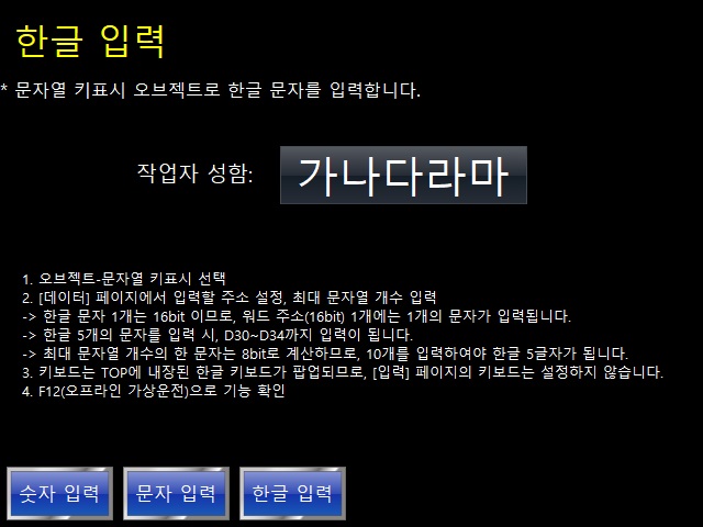 TOPDesignStudio 숫자값 입력, ASCII 문자 입력, 한글 입력 예제