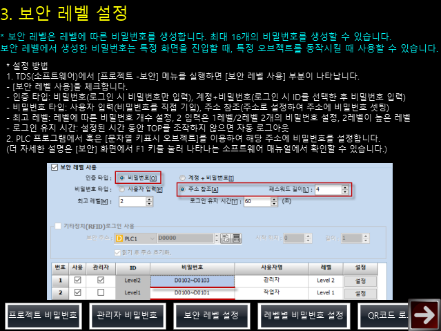 TOPDesignStudio 보안 설정방법, 프로젝트/관리자/화면/오브젝트 비밀번호 설정